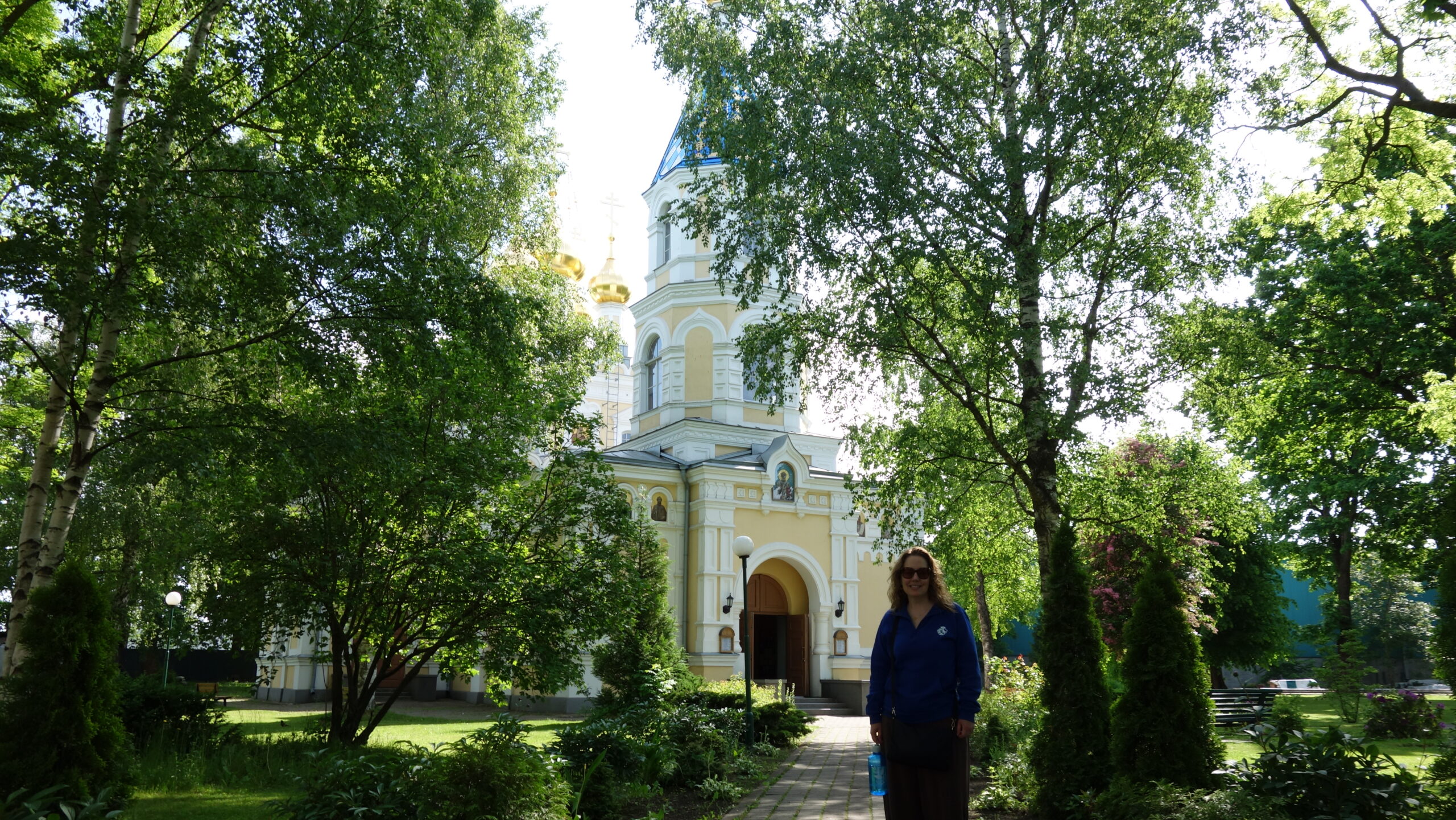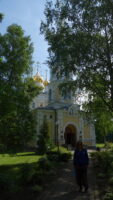 Anyway, we started the day off with a building on the completely other end of the beauty spectrum – the Russian Orthodox church in town. The outside has been recently renovated, and the domes shine from blocks away. The steeple is brightly tiled, and the paint on the outside is a cheerful yellow and white. The inside of the church still has some renovation to be done up near the roof, but the main eye-level area looked fresh, and there were icons everywhere. Several were interesting to us for their artistry or story; one showed saints being ordered around by men with guns. Our best guess was it was some story from World War I, but we’re not sure. Most of the icons were very colorful, and many had multiple saints in the icon. We spent a fair time looking around the church.
